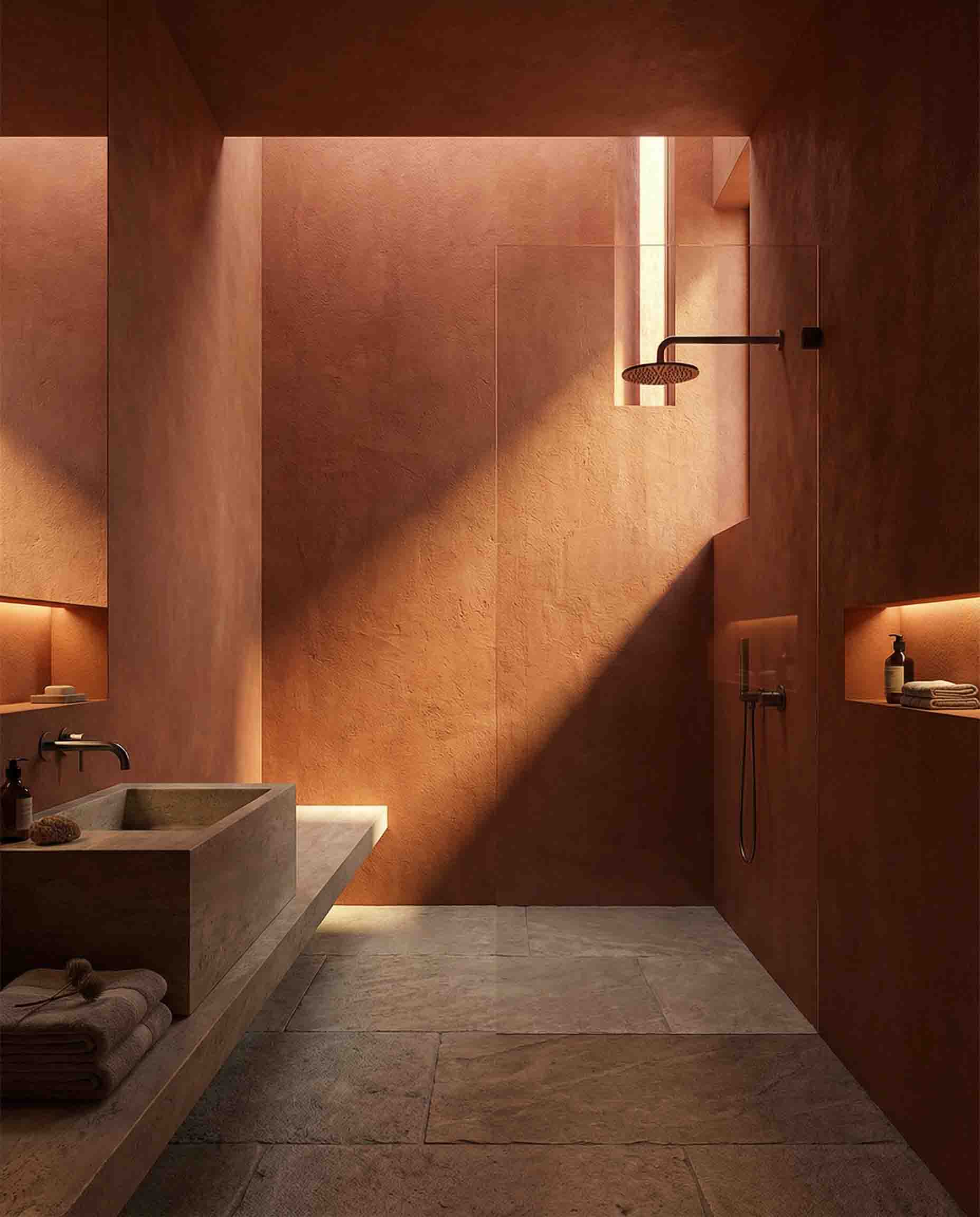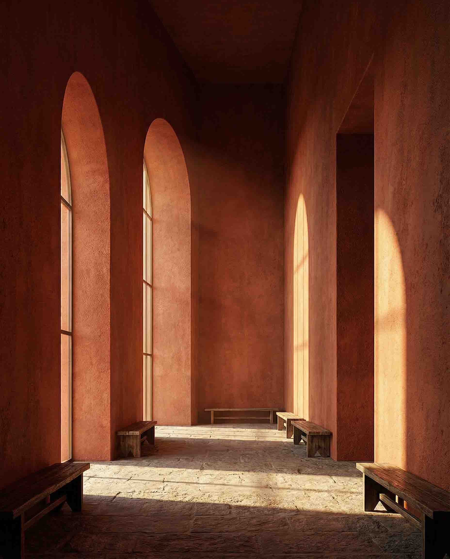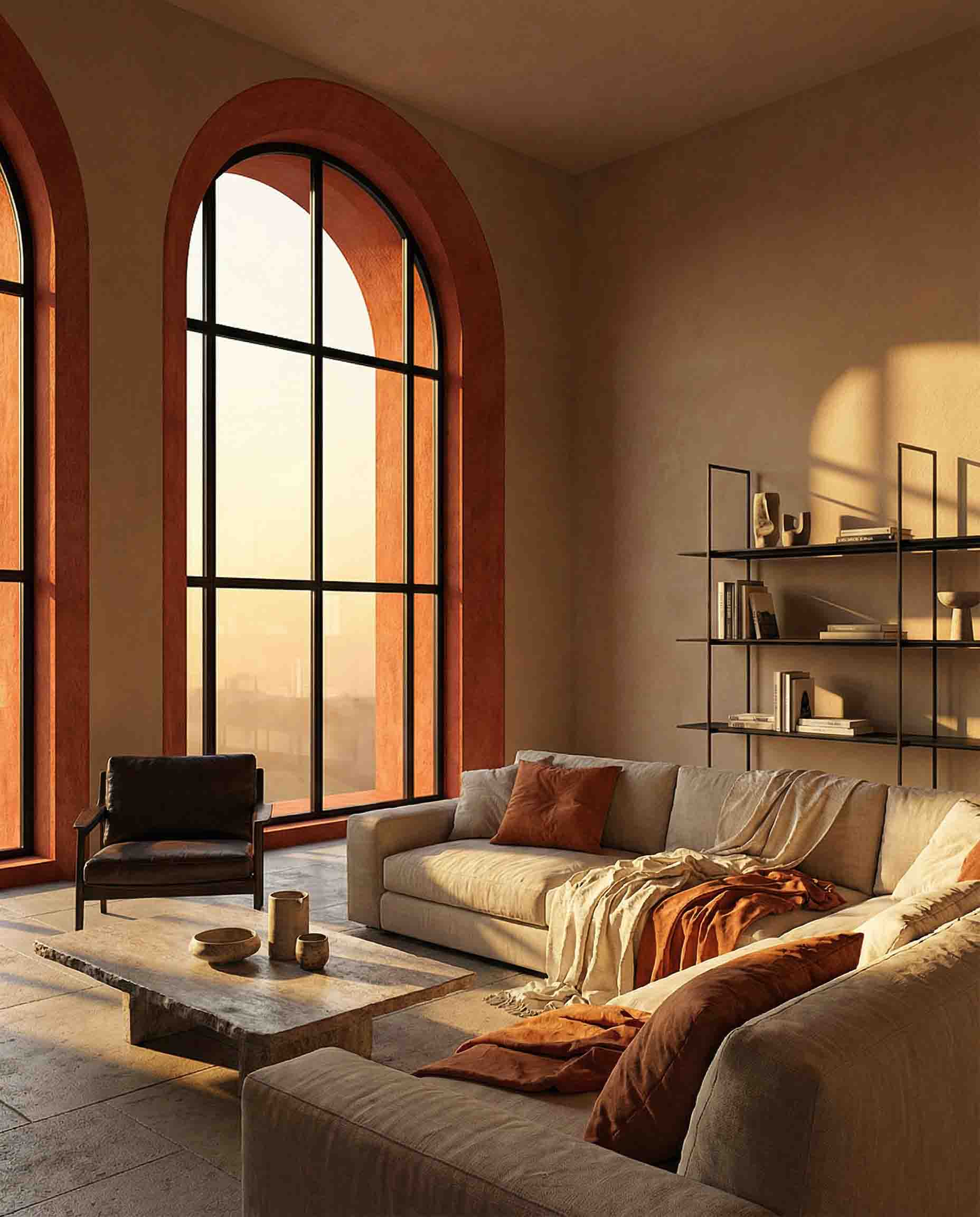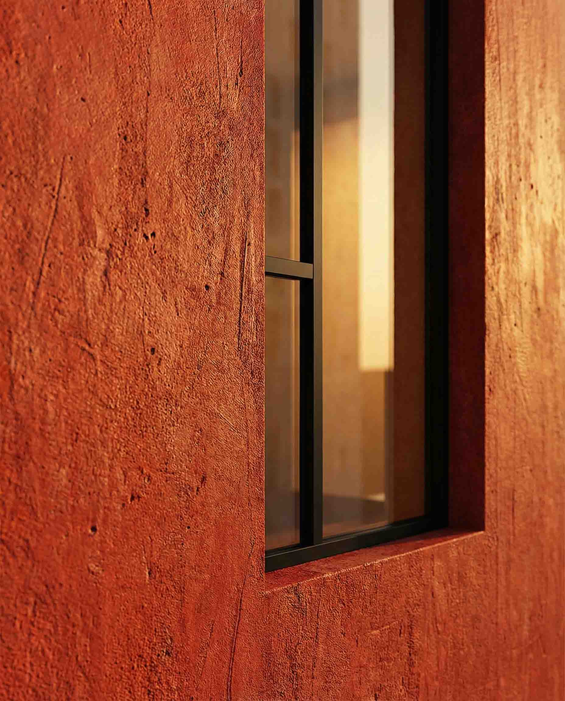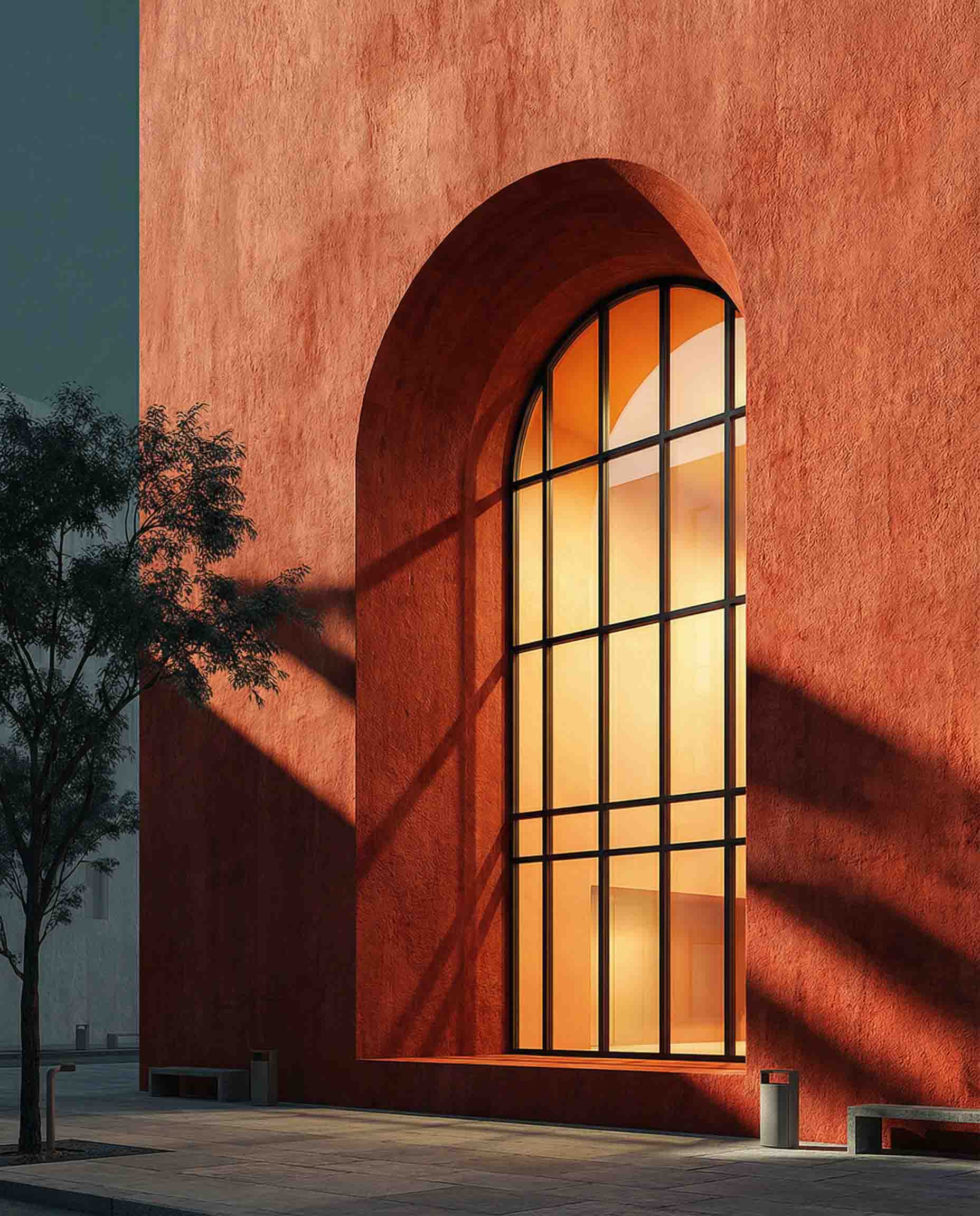 Ember Monolith Residence is a monolithic red-earth urban project shaped by carved openings, textured plaster surfaces, and dramatic natural light. It combines architectural austerity with emotional warmth, creating a strong identity rooted in shadow, material depth, and sculpted voids.