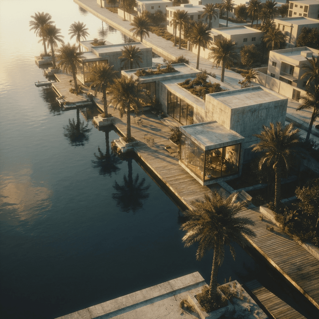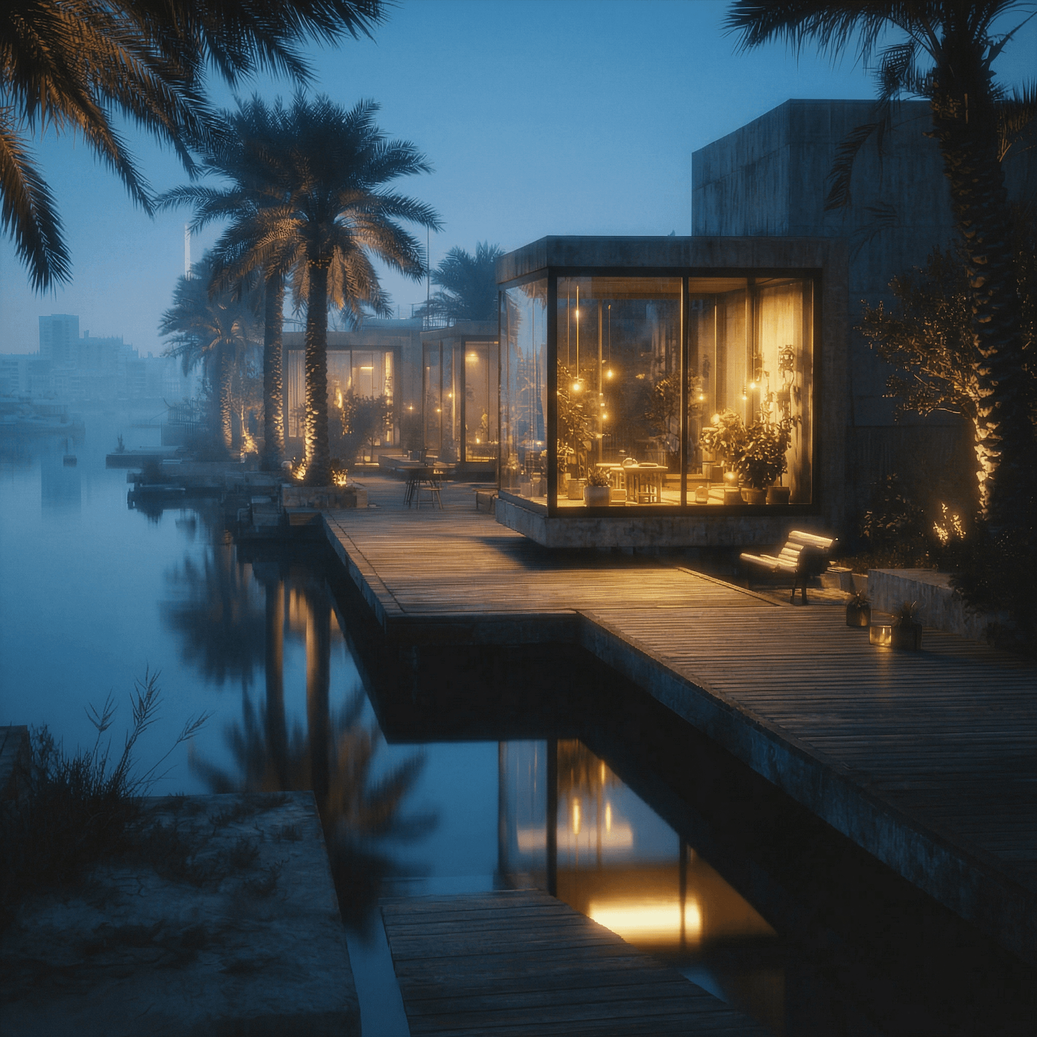 The project is designed to create a calm, immersive environment where architecture, water, and light interact seamlessly. The result is a tranquil retreat that blurs the boundary between indoor and outdoor living while maintaining a strong, modern identity.