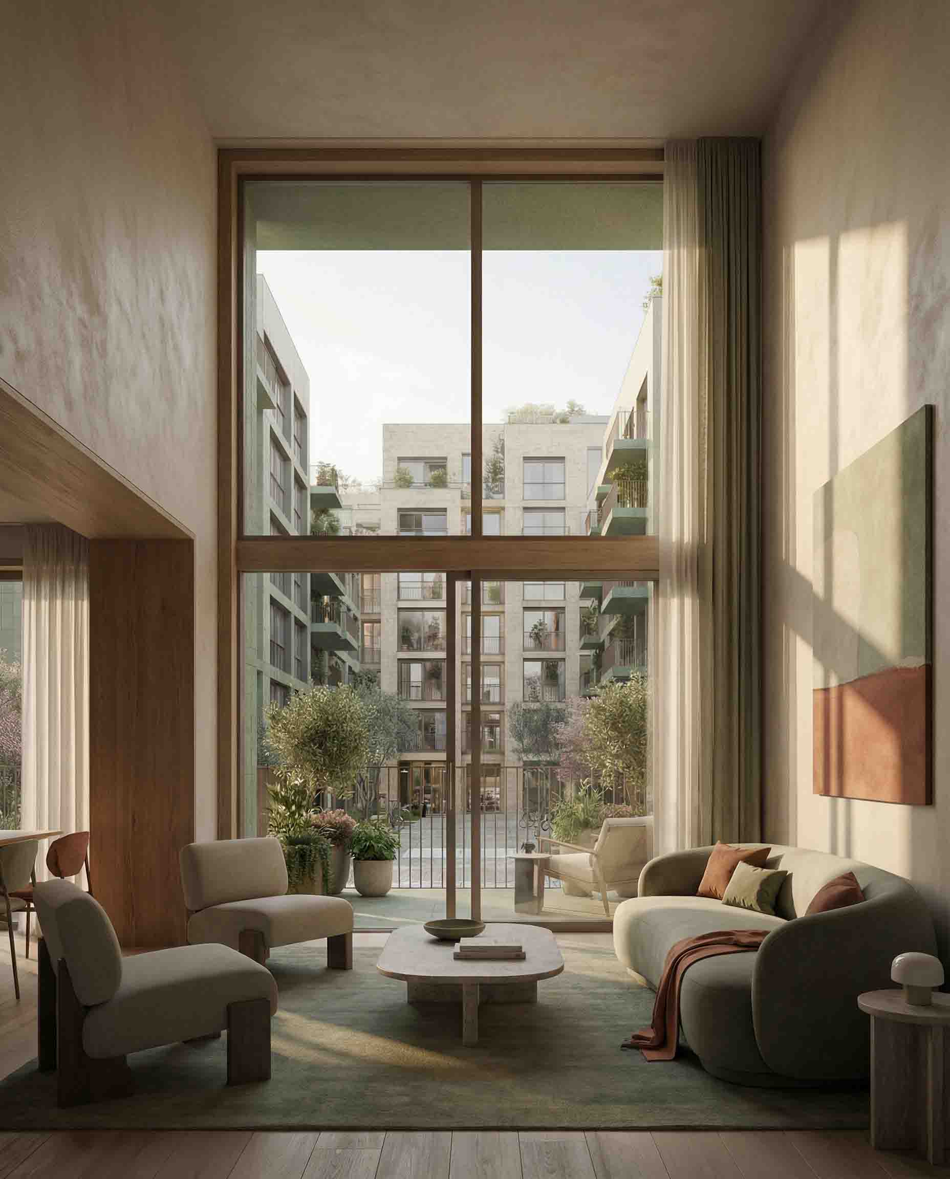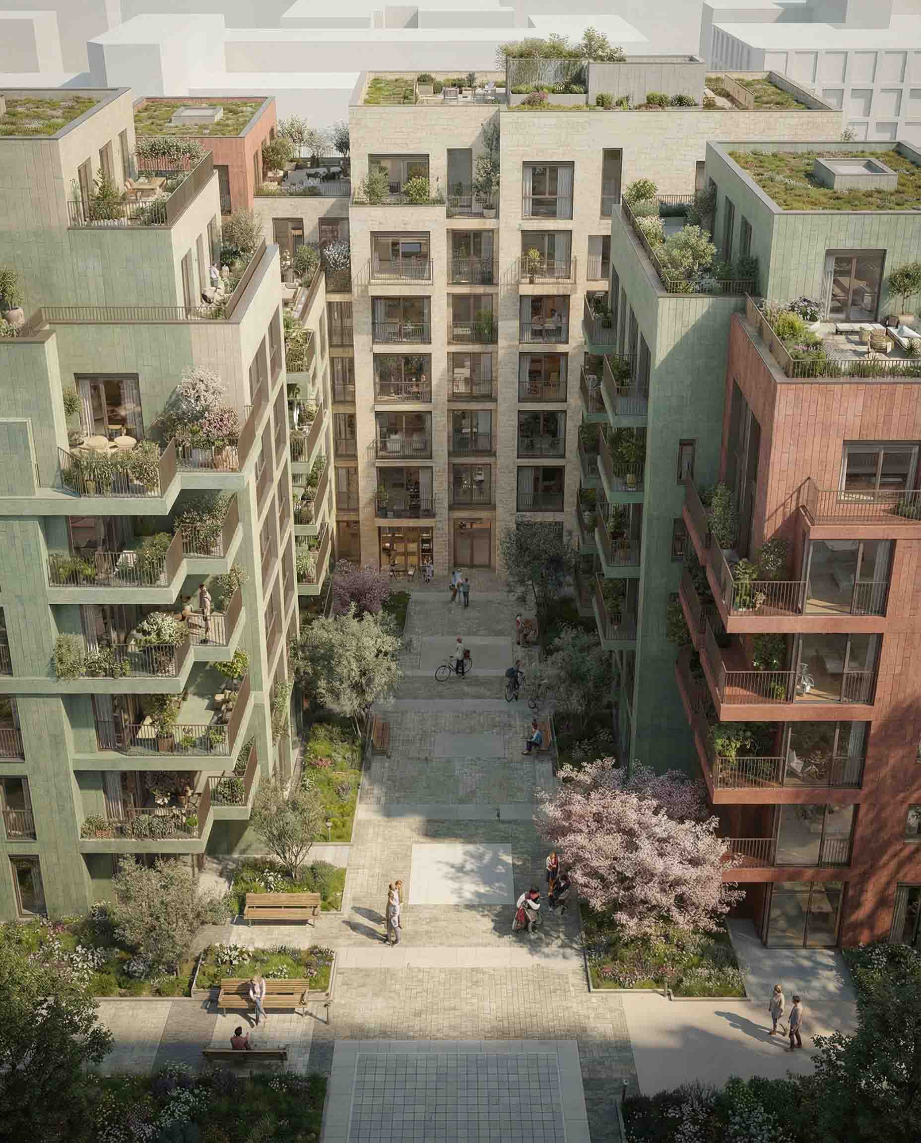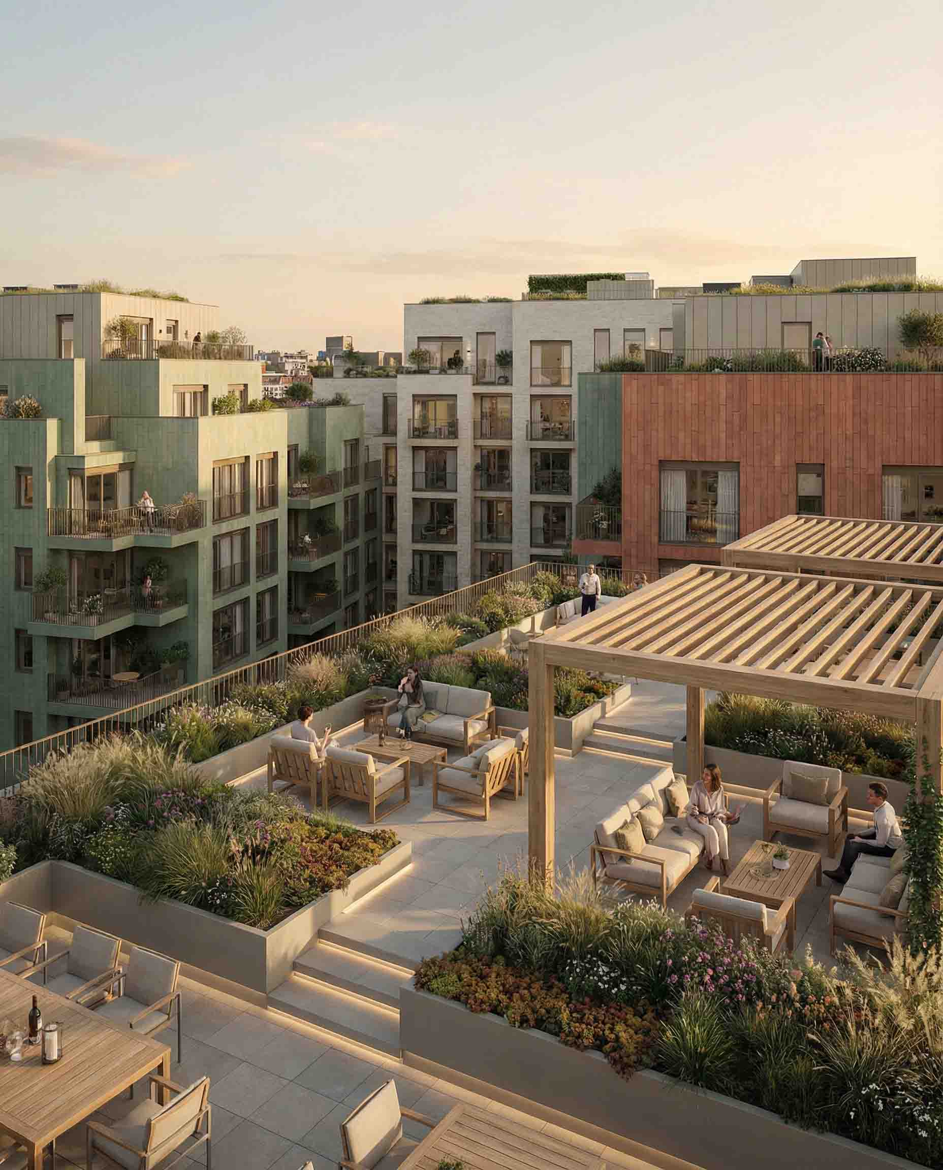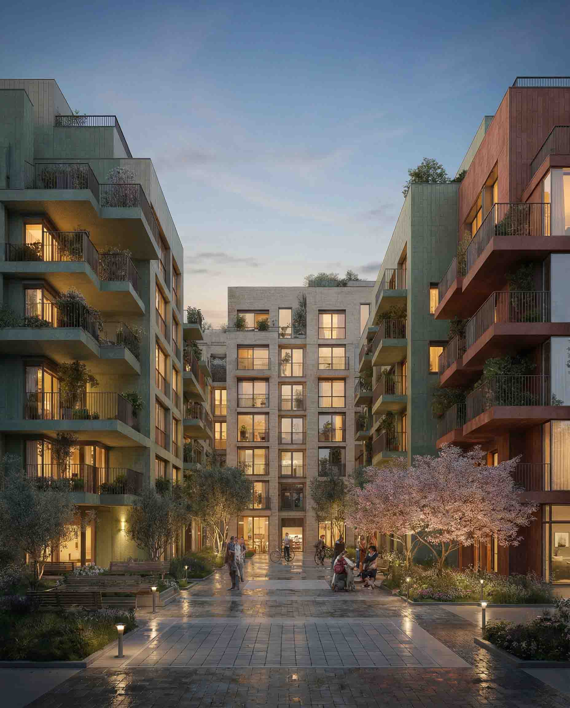 Verde Terracotta Courtyard is a contemporary residential development centered around a landscaped communal courtyard, combining sage-green and terracotta façades, planted balconies, and soft public-private transitions to create a calm, high-quality urban living environment.